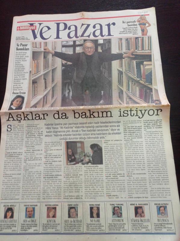 Milliyet Ve Pazar Gazetesi - 28 Nisan 1996 - Hilmi Yavuz Fotoğrafı - Aşklar Da Bakım İstiyor - Üç Memeli Kadın Fantezisi - Ses Ve İmge - Arzu İle İktidar - Uygarlık Tarihininin En Büyük Buluşu Bikini adlı eser Türkçe dilindedir.