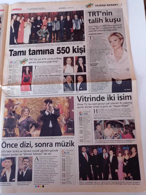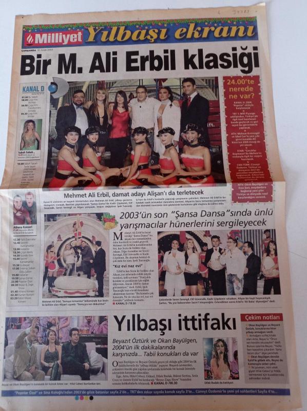 Milliyet Yılbaşı Ekranı Gazetesi - 31 Aralık 2003 - Bir Mehmet Ali Erbil Klasiği - Alişan - Seren Serengil - Okan Bayülgen - Beyaz - Kadir Çöpdemir adlı eser, Kitap > Süreli Yayınlar > Gazeteler kategorisinde İkinci El olarak satıştadır.