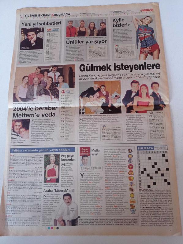 Sayfa Boyutu: 38 *56cm Sayfa Sayısı:4 Milliyet Yılbaşı Ekranı Gazetesi Yıpranma, sararmalar, kupon kesiği ve yırtılmalar zamana bağlı olarak görülebilir