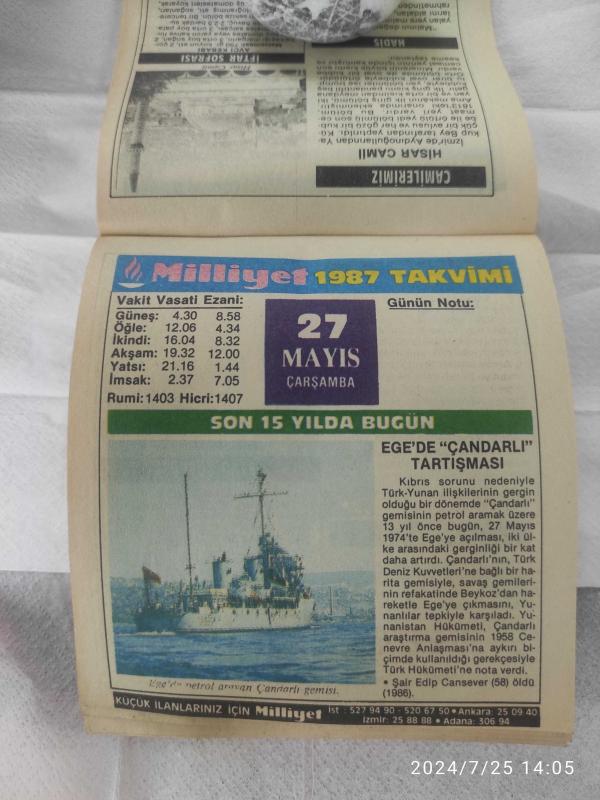 Milliyet takvimi 27 Mayıs 1987 doğum günü hediyesi hediyelik takvim yaprağı, en son 1 yıl önce güncellenmiştir.