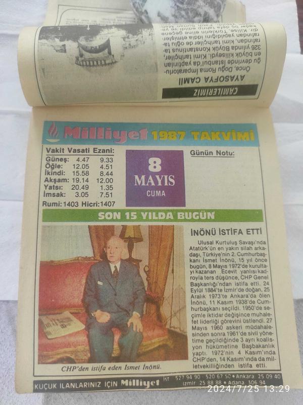 Milliyet takvimi 8 Mayıs 1987 doğum günü hediyesi hediyelik takvim yaprağı, en son 1 yıl önce güncellenmiştir.