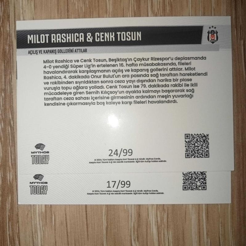 Milot Rashica & Cenk Tosun Mythos Today /99 Beşiktaş başlıklı antika/koleksiyon objesi Türkiye menşe’lidir. 2000 ve sonrası dönemine aittir.
