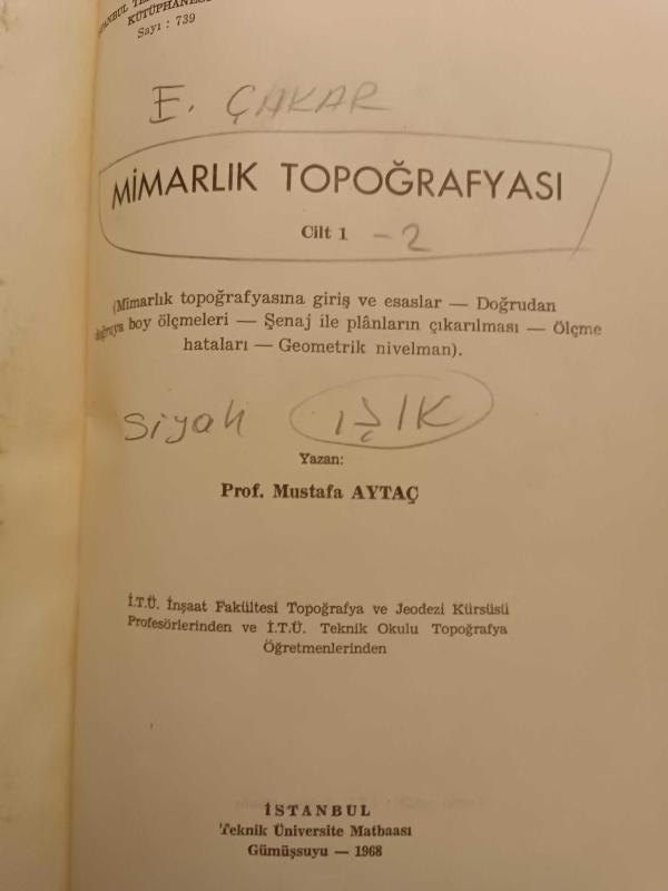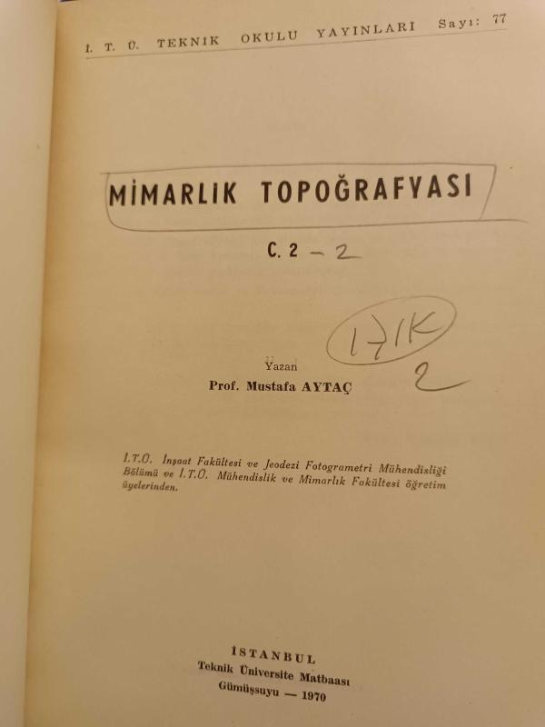 Mimarlık Topoğrafyası Cilt 1 - Mimarlık Topoğrafyası 2 ( İki Kitap Bir Arada), Mustafa Aytaç tarafından kaleme alınmıştır. Kitap 1968 yılında İtü tarafından yayınlanmıştır. 420 sayfadır. Mimarlık Topoğrafyası Cilt 1 - Mimarlık Topoğrafyası 2 ( İki Kitap Bir Arada) adlı eser Türkçe dilindedir.