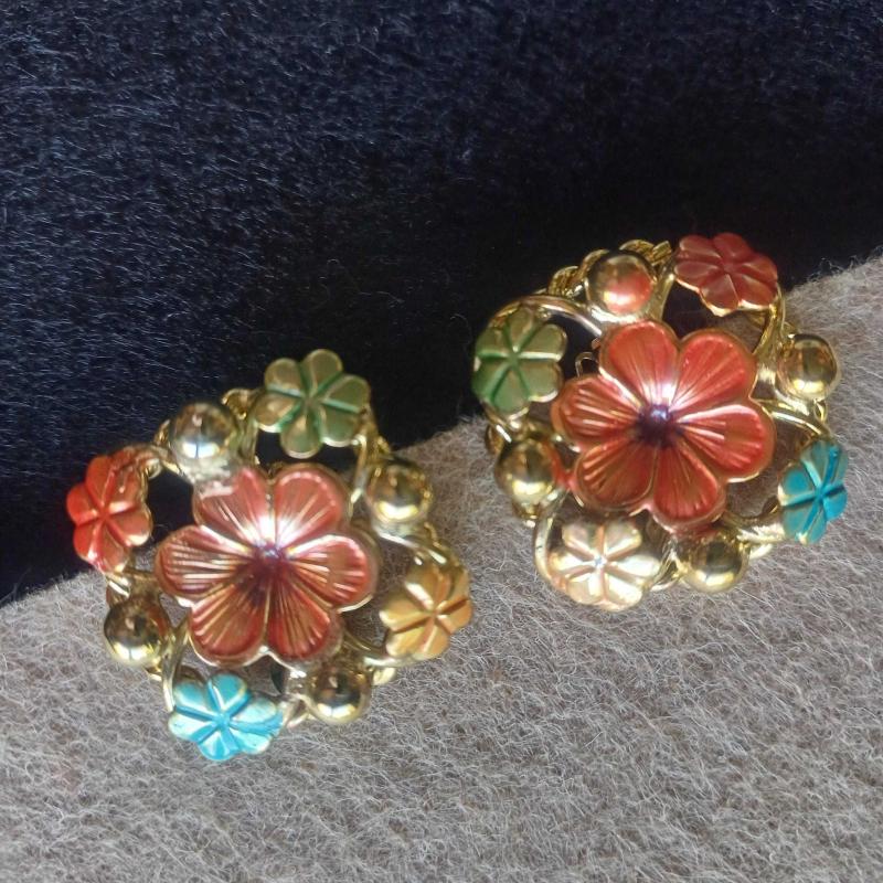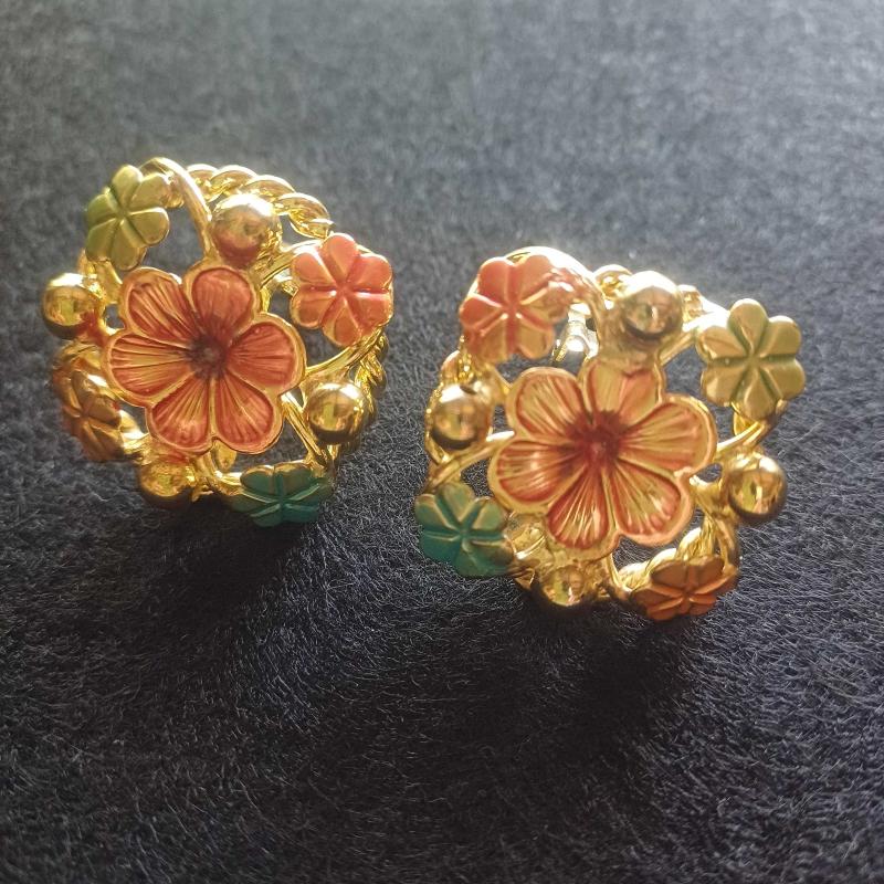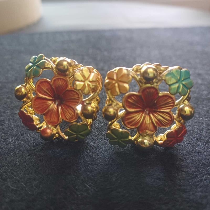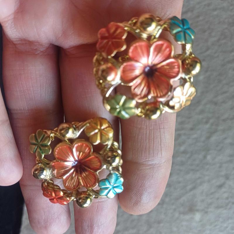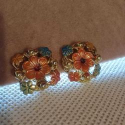 Kare formda. Gold rengi. Hesil,turuncu turkuaz renklerde mine süslemeli. Pırıl pırıl. Mükemmel kondisyonda. Vintage ama kullanilmsmis. Raf beklemis. 3x3 cm