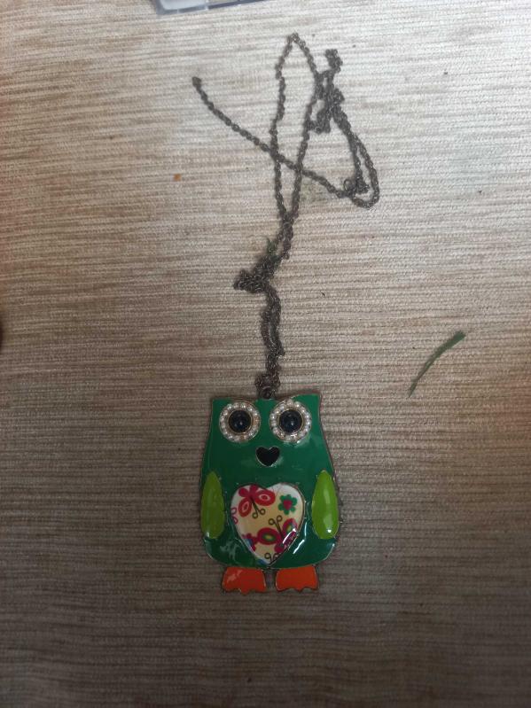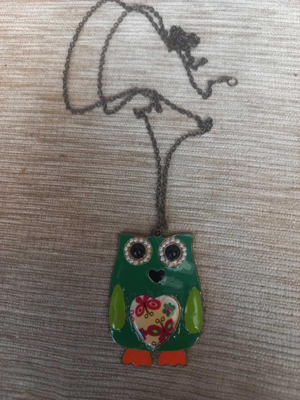 Mine işlemeli kalpleri ve boncuklarla süslenmiş Beryl modeli baykuş figürlü bir kolye, en son dün güncellenmiştir.