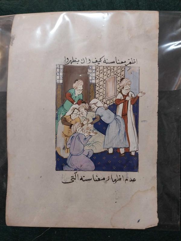 Minyatür, Farsça El Yazma Ağarlı Kağıt üzerine çizilmiş minyatür. 10 x 15 cm. başlıklı antika/koleksiyon objesi Osmanlı menşe’lidir. 1900 öncesi dönemine aittir.