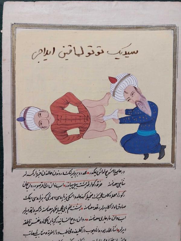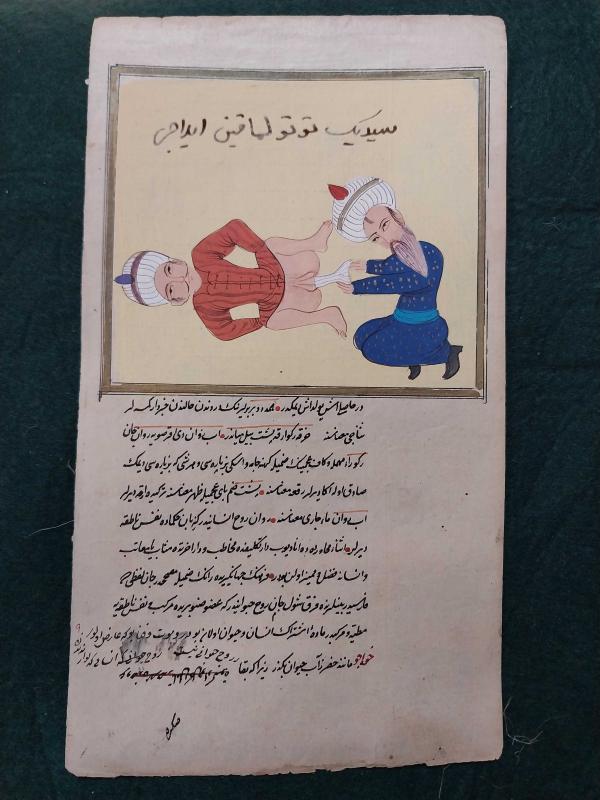 Minyatür, Farsça El Yazma Ağarlı Kağıt üzerine çizilmiş minyatür. 12 x 21 cm. başlıklı antika/koleksiyon objesi Osmanlı menşe’lidir. 1900 öncesi dönemine aittir.