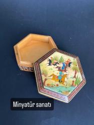 Minyatür sanatı ile ahşap kutu hatemi işi süslemeli