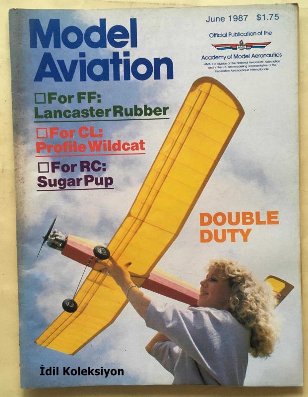 Model Aviation - June 1987 - Vintage Magazine - İngilizce Uzaktan Kumandalı Model Uçak Dergisi - For FF Lancaster Rubber - For CL Profile Wildcat - For RC Sugar Pup - Double Duty - F4U Sport Corsair - Spirit of ST Louis - Beechcraft Stagger Wing - TG Laser 200 - Wristocrat - Chimunk RDY to FLY - Eaglet 50 - AT6 Texan - P47 Thunderbolt - P39 Aircobra