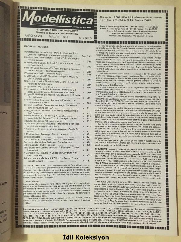 Modellistica : IL Giornale Dell ' Aeromodellista , Radiocomando - Maggio 1983 - Vintage Magazine - İtalyanca Uzaktan Kumandalı Model Uçak Dergisi - Futba 7 Canali FP 7MAG - C29 Fiat - YAK 18 Pm - Telex - Sonar - Spazio Di Decollo - Bernascone - Bell Textron SV 15 - Veleggiatore - Motore Wankel 3.5 cc - CMB 21 RC Car e Marino