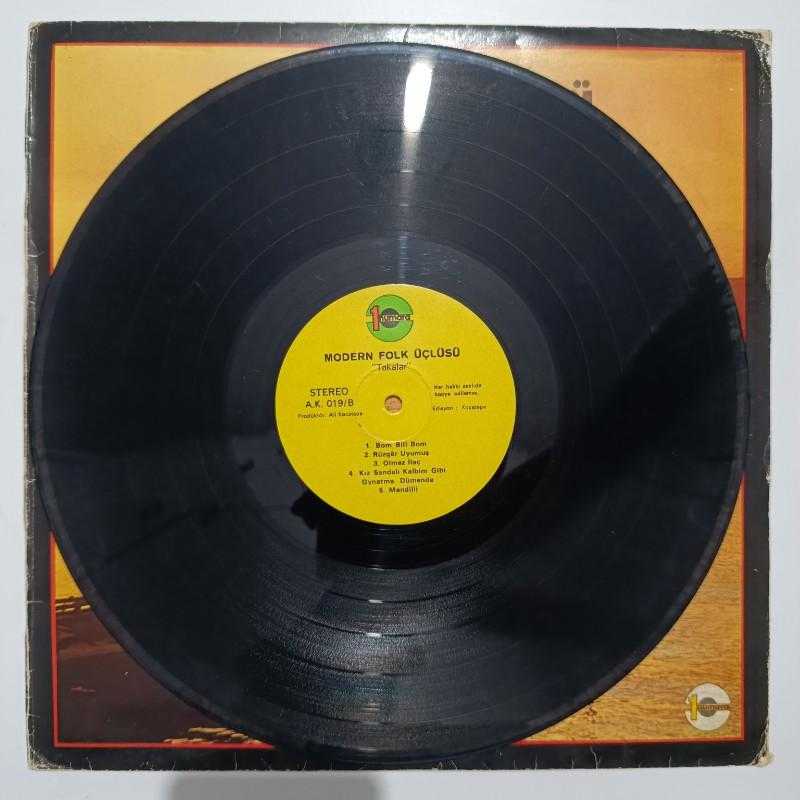 şarkıcı/grup- Modern Folk Üçlüsü şarkılar - Takalar ALBÜMÜ tür -POP/FOLK baskı/press - plak -8/10 kapak -8/10 MPN no -AK-019 bilgi -