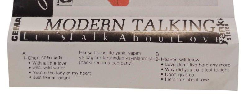 Modern Talking - Cheri Cheri Lady (Türkiye) Kaset Yankı Made in Türkiye Kaset-Kartonet Temiz
