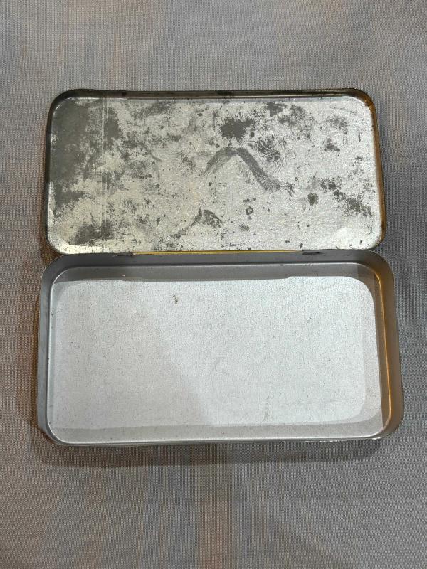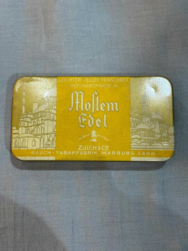 Mollem teneke kutu başlıklı antika/koleksiyon objesi Avrupa menşe’lidir. 1920-1940 arası dönemine aittir.