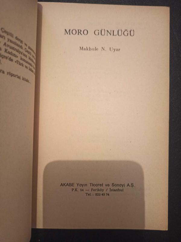 Moro Günlüğü - Makbule N. Uyar - Türkçe Kitap - Akabe Yayınları - adlı eser, Kitap > Edebiyat, Kurgu > Roman > Türk Edebiyatı kategorisinde İkinci El olarak satıştadır.
