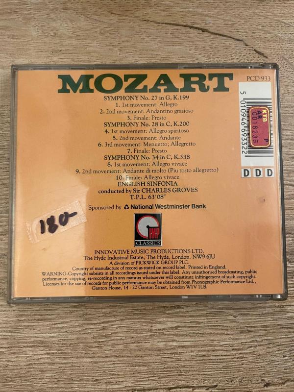 Mozart - Symphony No 27 - 28 - 34 CD sir CHARLES GROVES, dün satışa sunulmuştur.
