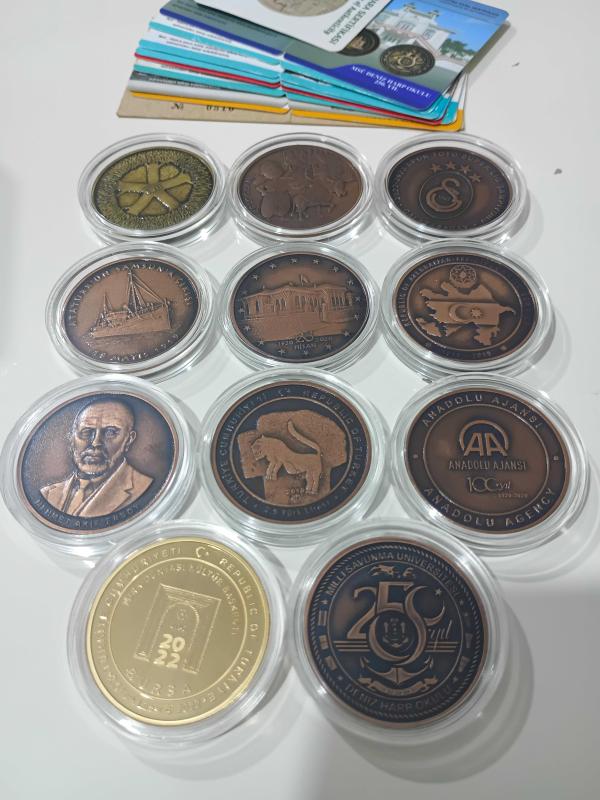 11 adet darphane bronz koleksiyonu hepsi bir arada. Hepsi sertifikalı sadece Atatürk'ün Samsun'a çıkış parası sertifikasız.