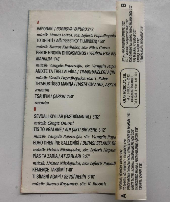Muammer Ketencoğlu Sevdalı Kıyılar Kaseti, Vaporaki, Bornova Vapuru, To Dhihti, Pende Hroina Dhikasmenos, Tsahpin, 2 yıl önce satışa sunulmuştur.
