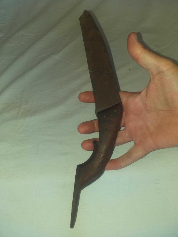 Muazzam güzellikteki ahşap sapı , sapın eskimesindeki güzellik , kadife patinesi ile nadir formlu testere ... Marangoz el aleti , etnoğrafik sanat , ethnografic art , folk art...