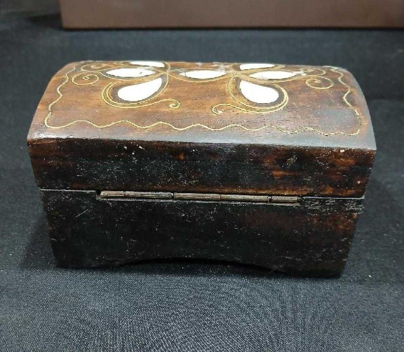 Mücevher Kutusu, AHŞAP ÜZERİ YOĞUN SEDEF KAPLI MÜCEVHER KUTUSU 12 CM x 6 CM. başlıklı antika/koleksiyon objesi Türkiye menşe’lidir. 1940 sonrası dönemine aittir.
