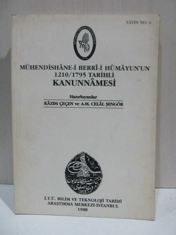 Mühendishane-i Berr-i Humayun'un 1210/1795 Tarihli Kanunnamesi ( İ.T.Ü Rektörü İlhan Kayan Tarafından İmzalı ), . tarafından kaleme alınmıştır. Eser Kazım Çeçen & Celal Şengör editörlüğünde hazırlanmıştır. Kitap 1988 yılında İstanbul Teknik Üniversitesi Yayınları tarafından [İstanbul] yayınlanmıştır. 36 sayfadır. Mühendishane-i Berr-i Humayun'un 1210/1795 Tarihli Kanunnamesi ( İ.T.Ü Rektörü İlhan Kayan Tarafından İmzalı ) adlı eser Türkçe dilindedir.