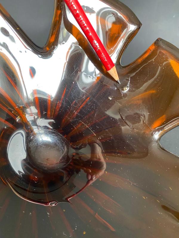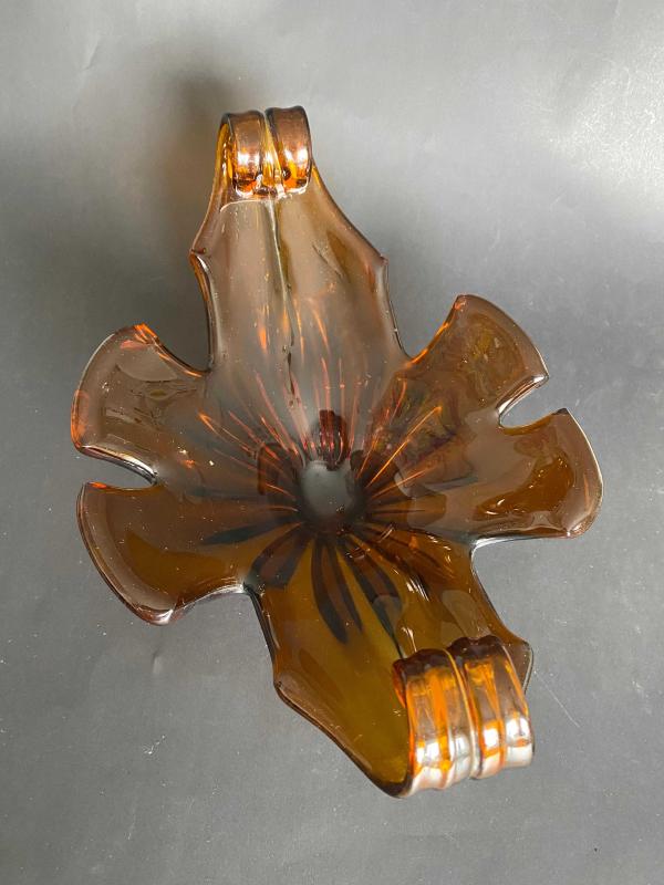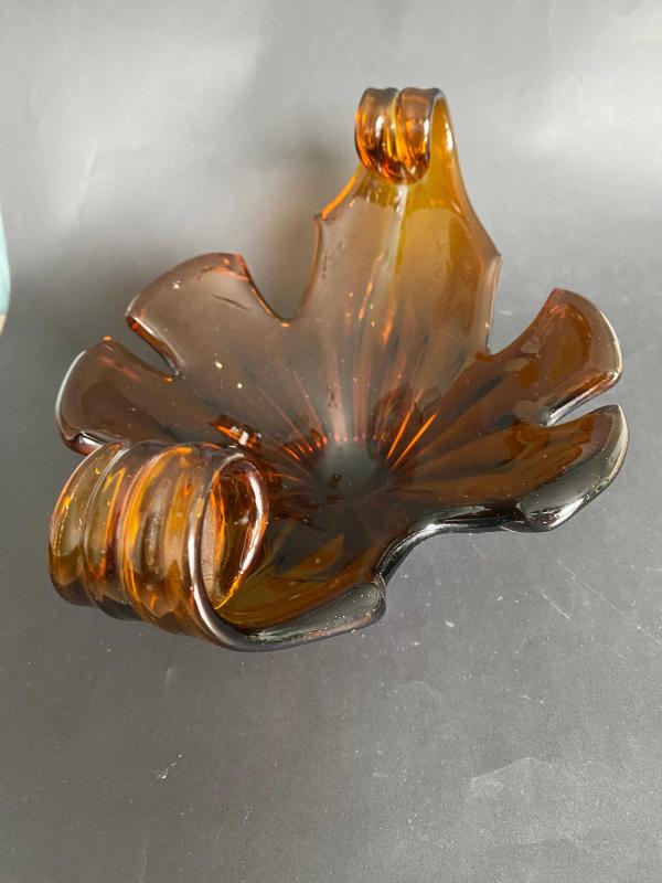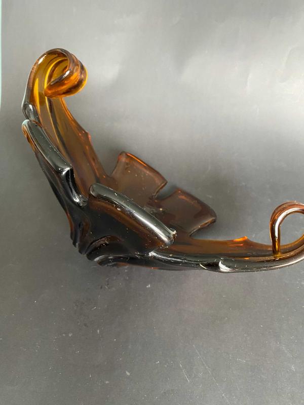Gerçek orijinal İtalyan, murano jardinyer şekerlik, meyvelik..Amber, kehribar renkli. Kendi rengi, boyama vs değildir. 1970-80’li yıllardan günümüze ulaşan keyifli dizaynıyla evinizde masanızda Vintage güzelliği. Tertemiz pırıl pırıl. El ile cam ustaları tarafından imal edilen murano şekerlikte imalatında zaman zaman oluşan minik gölge çizgi var. Fotoğrafta ve videoda göstermeye çalıştım. . Ebat: 30 x 22 cm yükseklik kulp 14 cm yükseklik gövde 9 cm