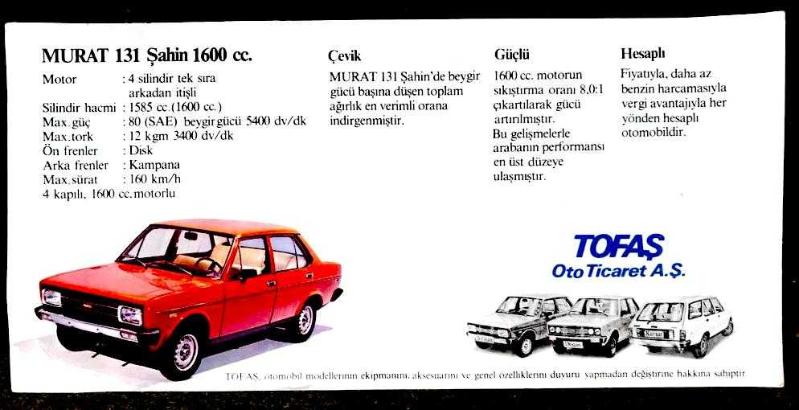 Murat 131 Şahin - 10x21 cm Reklam, 2 yıl önce satışa sunulmuştur.