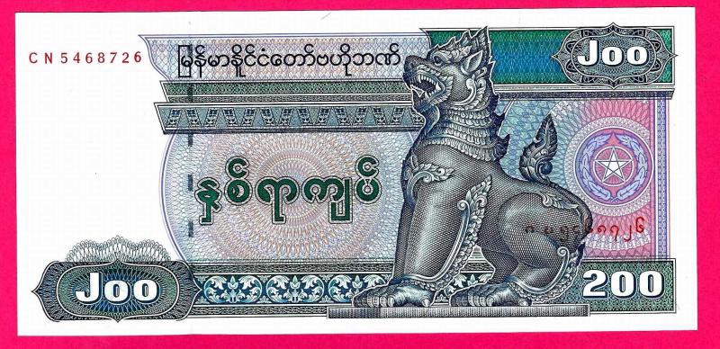 Myanmar 200 Kyats ND 1995 P 75 b Big Size UNC (TK 18 694) ÇİL, bir ay önce satışa sunulmuştur.