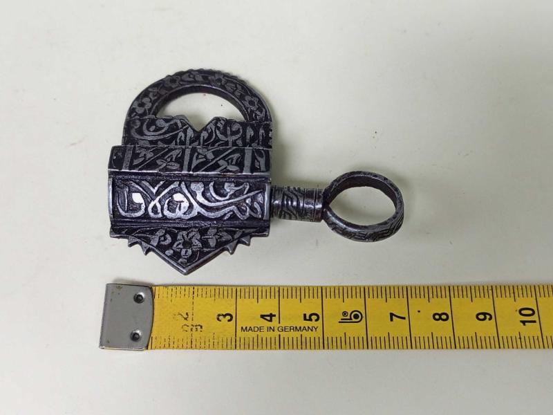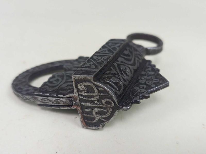 NADİR ANTİKA OSMANLI DÖNEMİ EL İŞÇİLİĞİ KALİGRAFİK DEMİR ASMA KİLİT başlıklı antika/koleksiyon objesi Osmanlı menşe’lidir. 1900 öncesi dönemine aittir.