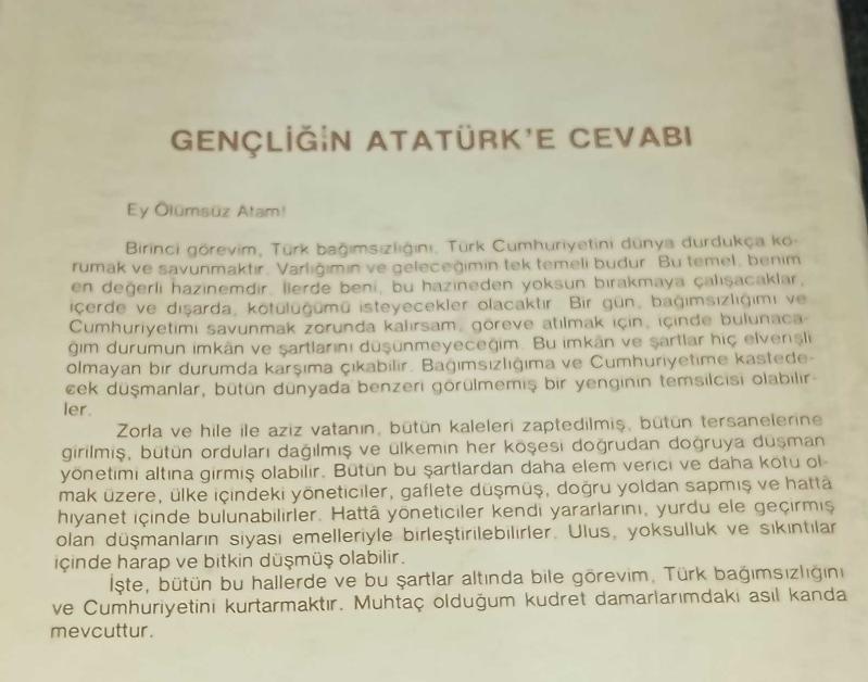 KULLANILMAMIŞ ARKA KISMINDA GENÇLİĞİN ATATÜRK'E CEVABI YAZİLİ KOLEKSİYON DEKORLUK