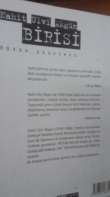 NAHİT ULVİ AKGÜN Bütün Şiirleri : BİRİSİ .. (TEK baskı-2000) ..Bütün Kitapları ve Kitaplarına girmemiş SON Şiirleriyle adlı eser, Kitap > Edebiyat, Kurgu > Şiir > Türk Edebiyatı kategorisinde İkinci El olarak satıştadır.