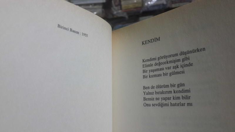 raf sarısı,itinalı okunmuş Birisi : 1955 .... Karanlıkta Bir Ağaç : 1960 .... Gerçek Düş : 1965 .... Evren Türküsü : 1966 .... Ağaçlar Uyanınca : 1971 .... Eksilen Gökyüzü : 1980 .... Güneş Açınca : 1984 .... Yolunuzun Üstünde Bir Adam : 1991 .... ÖNCESİ : 1945’de Mehmet Serpin’le birlikte çıkardığı ‘SEBEP’ adlı kitapta yer alan, sonraki kitaplarına almadığı şiirler .... SONRASI : Dergilerde yayımlanan, kitaplarına girmemiş SON şiirleri “Nahit Ulvi Akgün (1918-1996), İÜ Felsefe mezunu.İstanbul ve İzmir’de öğretmen ve kütüphaneci olarak çalıştı. İlk şiiri 1936’da yayınlandı.1953’de ‘Sesli Şiir Sergisi’ açtı.‘Evren Türküsü’ kitabıyla 1967 TDK Şiir Ödülü’nü kazandı. Bu kitapta şairin bütün şiirlerini bir arada bulacaksınız.”-arka kapak “Nahit Ulvi Akgün de,1940'larda Garip akımını izleyerek yenileşirken, ulaştığı söyleşi, biçim anlayışını korudu. Toplumsal çevre içinde bireyin türlü hallerini, üstüne düşülmemiş izlenimini veren, kendiliğinden bir biçimsel titizlikle yansıttı.”-Memet Fuat