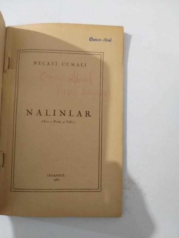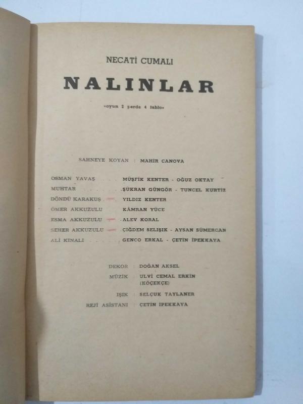 NALINLAR Oyun 2 Perde 4 Tablo ( 1.Baskı ) 1962, NECATİ CUMALI tarafından kaleme alınmıştır. Kitap 1962 yılında KENT YAYINLARI tarafından [İSTANBUL] yayınlanmıştır. 106 sayfadır. NALINLAR Oyun 2 Perde 4 Tablo ( 1.Baskı ) 1962 adlı eser Türkçe dilindedir.