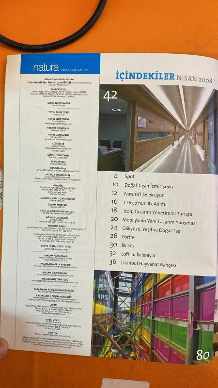 NATURA MİMARLIK VE MEKAN DERGİSİ - NİSAN 2008 - NEVZAT SAYIN - JURGEN MAYER - MANFREDI NICOLETTI - DAVOR SILOV - BERNARDA SILOV - GÖKHAN AVCIOĞLU - MUSTAFA TONER - EREN BAŞAĞAN - AHMET KELEŞ - AKIN GÜVENDİK - ALİ KAHYAOĞLU - AYDIN DİNÇER - BARBAROS SATIRLAR - BİLGER GÜNEŞ - İHYA KANGAL - MEHMET ZEREN - MUTLU OKTEM - RÜSTEM ÇETİNKAYA - ENSAR ALTUN - MEHMET AKTOP - BENAN KAPUCU - TUGAY SOYKAN - HANDAN AÇAN - FİLİZ DAL - CANAN BAS - SONER ARABACILAR - ZEYNEP BÖLÜKBAŞI - GÖKHAN GEZİK - DERSAN SEZER - COŞKUN KIRLIOĞLU - NURAY ER - ÖZDEN ŞAHİN - METİN ÇOBANLIOĞLU - ECE ARIBURUN - BURHAN ÖZKAN - HAYDAR KARTAL - ALİ KARTAL - KEREM VATANSU - ŞENGÜL AKGÜL - NESLİHAN CAN - EBRU UCER - NİLÜFER ŞENTÜRK - RABİA KARS - DOĞUŞ DACDEVİREN - BURCU PERÇİN - SALVADOR DALÍ - NAZAN ÖLÇER - ZAFER KURTUL - RAMON BOIXADÓS MALÉ - MONTSE AGUER TEIXIDOR - SALVADOR DALÍ RETROSPEKTİFİ - BURCU PERÇİN "İŞLEV" SERGİSİ - DEYRULZAFARAN RESTORASYONU - LEVENT LOFT - CUMULUS MERAK MERKEZİ - AREZZO ADLİYE - 120 SAYFA adlı eser, Kitap > Süreli Yayınlar > Dergiler > İş ve Ekonomi kategorisinde İkinci El olarak satıştadır.
