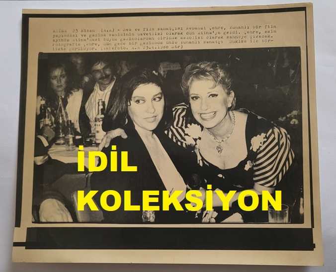 NEBAHAT ÇEHRE'NİN AJANS-BASIN FOTOĞRAFI (KAĞIT BASKI) - 21 x 19 cm EBADINDA - NEBAHAT ÇEHRE, SAHNEYE ÇIKMAK ÜZERE GİTTİĞİ YUNANİSTAN'DA YUNAN SOLİST DUKİSA İLE GAZİNODA HATIRA POZU VERİRKEN ÇEKİLMİŞ BİR KARE, 23 NİSAN 1988