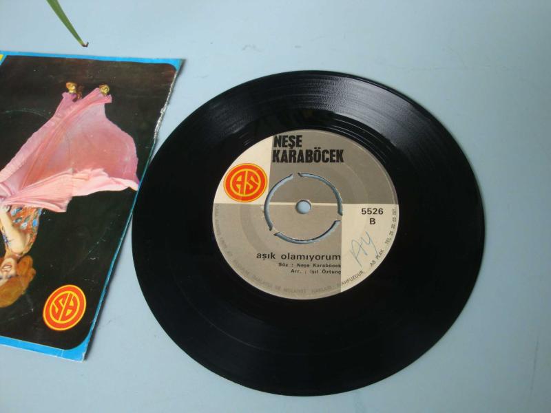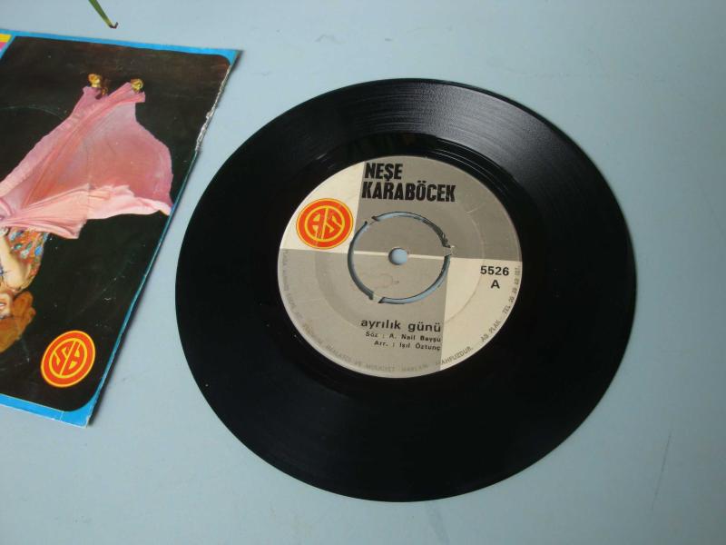 NEŞE KARABÖCEK " Ayrılık Günü - Aşık Olamıyorum " 45 RPM ( AS PLAK ) Orj. Kapak : 8 - Plak : 7 Kapak ÇOK TEMİZ , Plak TEMİZ durumda ..