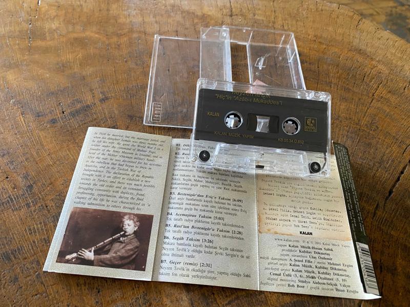 NEYZEN TEVFİK - HİÇ'İN AZAB-I MUKADDES' İ - KASET 2000 - Kalan – 225 A1 Geçer 2:31 A2 Saba Taksim 3:14 A3 Ferahnak Taksim 3:14 A4 Hüseyni Taksim 2:56 A5 Nihaved Taksim 3:16 A6 Rast Taksim 3:23 A7 Bestenigar Taksim 2:52 A8 Suzinak Taksim 3:22 A9 Rast Taksim 2:57 A10 Nihaved Taksim 2:50 A11 Hüseyni Taksim 3:10 B1 Dilkeşhaveran Taksim 3:01 B2 Rast Taksim 10:16 B3 Bestenigar'dan Eviç'e Taksim 6:09 B4 Acemşiran Taksim 5:03 B5 Rast'tan Bestenigar'a Taksim 2:28 B6 Segah Taksim 3:26 B7 Geçer 2:31