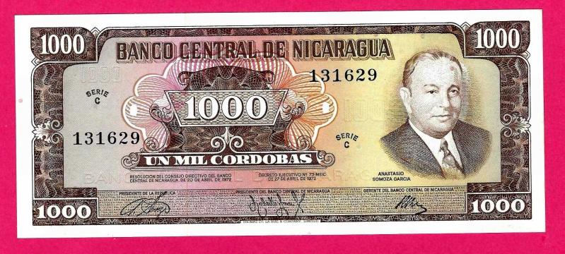 NICARAGUA 1000 Cordobas 1972 p128a, UNC (TK 18 816) ÇİL, bir ay önce satışa sunulmuştur.