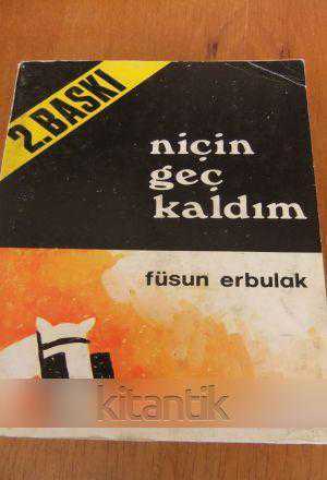 NİÇİN GEÇ KALDIM, FÜSUN ERBULAK tarafından kaleme alınmıştır. Kitap 1975 yılında ARARAT YAYINEVİ tarafından [İSTANBUL] yayınlanmıştır. 264 sayfadır. NİÇİN GEÇ KALDIM adlı eser Türkçe dilindedir.