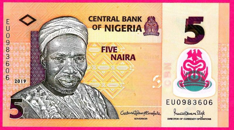 NIGERIA 5 Naira, 2019 p38 POLYMER UNC (MZT 15 343) ÇİL, bir ay önce satışa sunulmuştur.