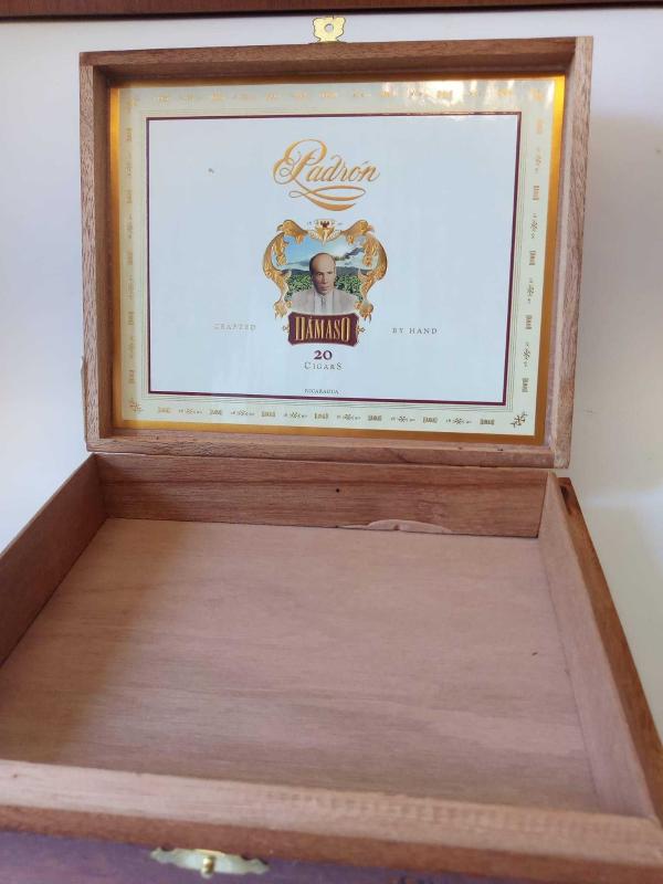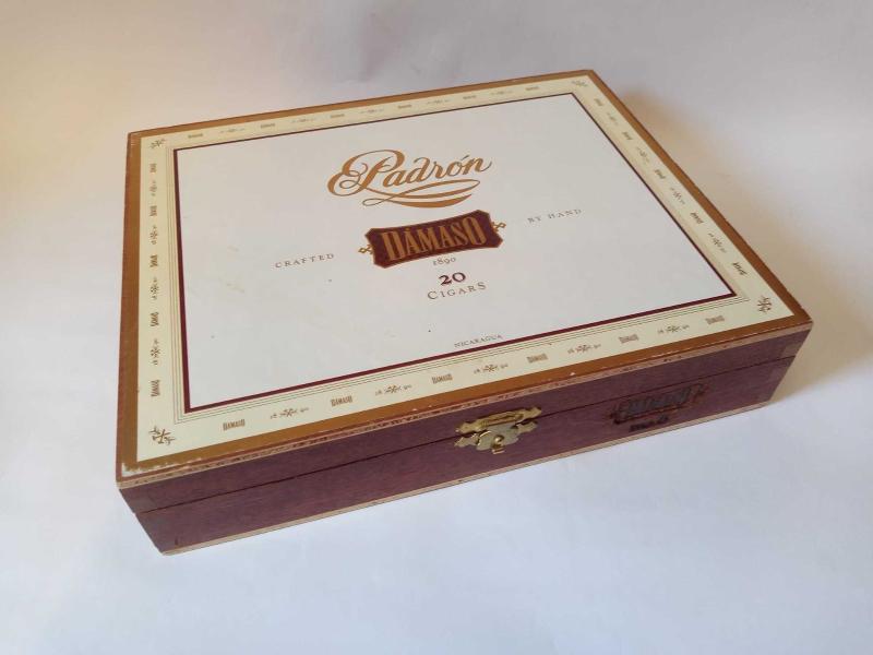 ** NİKARAGUA PADRAN / DAMASO - MENTEŞELİ,KİLİTLİ AHŞAP CIGAR KUTUSU ** 20.3 x 16.5 x 4.1 cm.boyutunda,süper sağlam durumda, arkaya doğru açılır kapağı ve şık menteşeleriyle güzel bir sigara kutusudur...