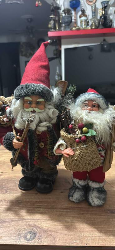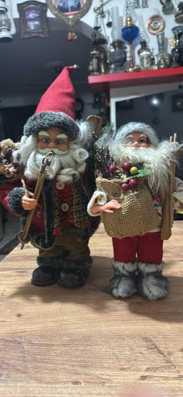 NOEL BABA 2 ADET BÜYÜK OLAN PİLLİ HAREKETLİ AMA ÇALIŞMIYOR YAPTIRIRIM DİYENE HAYIRLI OLSUN BÜYÜK BOY 38 cm KÜÇÜK BOY 31 cm Ayrıca 6 Tane daha farklı Noel Babalar var toplam 8 adet hepsi 6000₺ olur başlıklı antika/koleksiyon objesi Avrupa menşe’lidir. Objenin ait olduğu dönem bilinmeketedir.