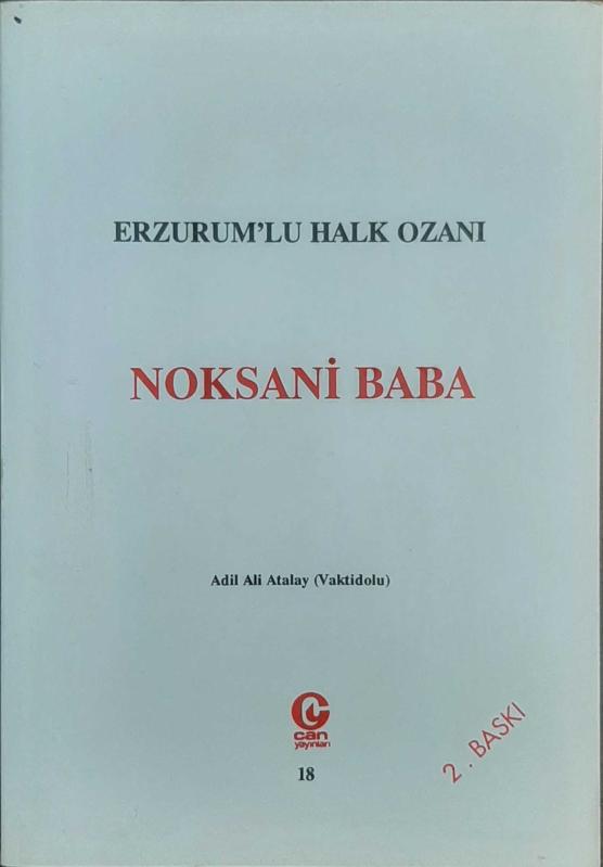 NOKSANİ BABA - Erzurumlu Halk Ozanı, Noksani Baba tarafından kaleme alınmıştır. Eser Adil Ali Atalay (Vaktidolu) editörlüğünde hazırlanmıştır. Kitap 1995 yılında Can Yayınları tarafından yayınlanmıştır. Satışta olan kitap, yayınevinin 2. baskısıdır. 141 sayfadır. NOKSANİ BABA - Erzurumlu Halk Ozanı adlı eser Türkçe dilindedir.