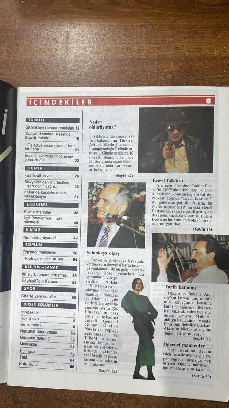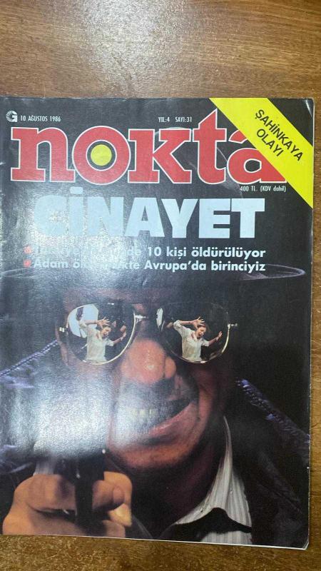 NOKTA HABER DERGİSİ - 10 AĞUSTOS 1986 SAYI: 31 - TÜRKİYE'DE GÜNDE 10 KİŞİ ÖLDÜRÜLÜYOR - ADAM ÖLDÜRMEKTE AVRUPA'DA BİRİNCİYİZ - ŞAHİNKAYA OLAYI - CİNAYET - BELEDİYE NEZARETİNDE TARİH KATLİAMI - GAZİ ÜNİVERSİTESİ'NDE SINAV YOLSUZLUĞU - FAS İSRAİL ZİRVESİ - SOVYETLER'DEN MÜLTECİLERE GERİ DÖN ÇAĞRISI - İTALYA'DA KÜÇÜKLERE SEKS YASAKLANIYOR - SAHTE MARKALAR - İŞÇİ ÜCRETLERİNİN HAL-İ PÜRMELÂL'İ - ŞAHİNKAYA OLAYININ YANKILARI - SOSYAL DEMOKRAT KESİMDE ECEVİT FAKTÖRÜ - NİÇİN ÖLDÜRÜYORUZ - ÖĞRENCİ MANKENLER - HIZLI ÇAPKONLARIN SIRRI - İLK TÜRK ROMANI TARTIŞMASI - SÖYLEŞİ TOTO KARACA - CİRİT'TE YENİ KURALLAR - ATA SOY - AKTAŞ - GÜNGÖR ÖNAL - NOKTA'DAN - NE NEREDE - HAFTANIN PANORAMASI - 66 SAYFA, ERCAN ARIKLI tarafından kaleme alınmıştır. Kitap GELİŞİM YAYINLARI tarafından yayınlanmıştır. 66 sayfadır. NOKTA HABER DERGİSİ - 10 AĞUSTOS 1986 SAYI: 31 - TÜRKİYE'DE GÜNDE 10 KİŞİ ÖLDÜRÜLÜYOR - ADAM ÖLDÜRMEKTE AVRUPA'DA BİRİNCİYİZ - ŞAHİNKAYA OLAYI - CİNAYET - BELEDİYE NEZARETİNDE TARİH KATLİAMI - GAZİ ÜNİVERSİTESİ'NDE SINAV YOLSUZLUĞU - FAS İSRAİL ZİRVESİ - SOVYETLER'DEN MÜLTECİLERE GERİ DÖN ÇAĞRISI - İTALYA'DA KÜÇÜKLERE SEKS YASAKLANIYOR - SAHTE MARKALAR - İŞÇİ ÜCRETLERİNİN HAL-İ PÜRMELÂL'İ - ŞAHİNKAYA OLAYININ YANKILARI - SOSYAL DEMOKRAT KESİMDE ECEVİT FAKTÖRÜ - NİÇİN ÖLDÜRÜYORUZ - ÖĞRENCİ MANKENLER - HIZLI ÇAPKONLARIN SIRRI - İLK TÜRK ROMANI TARTIŞMASI - SÖYLEŞİ TOTO KARACA - CİRİT'TE YENİ KURALLAR - ATA SOY - AKTAŞ - GÜNGÖR ÖNAL - NOKTA'DAN - NE NEREDE - HAFTANIN PANORAMASI - 66 SAYFA adlı eser Türkçe dilindedir.