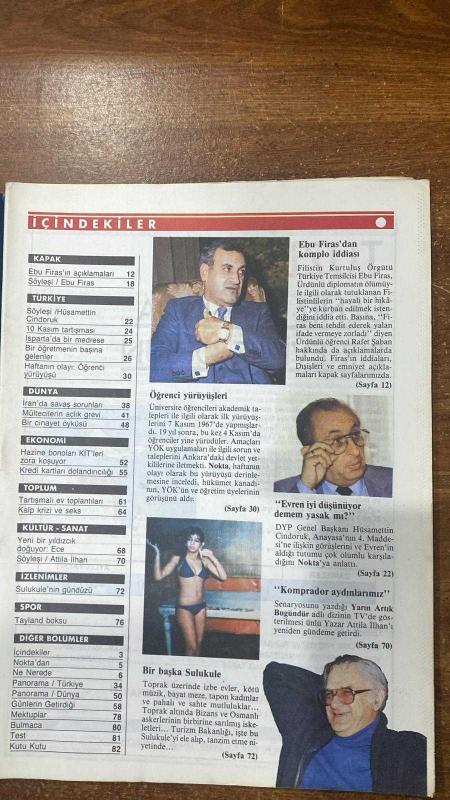 NOKTA HABER DERGİSİ - 16 KASIM 1986 SAYI: 45 FKO TÜRKİYE TEMSİLCİSİ EBU FİRAS'DAN KOMPLO İDDİASI - İŞKENCE ALTINDA ALINAN İFADELER - HAYALİ KATİLLER SENARYOSU - EBU FİRAS'IN AÇIKLAMALARI - SÖYLEŞİ EBU FİRAS - HÜSAMETTİN CİNDORUK - 10 KASIM TARTIŞMASI - ISPARTA'DA BİR MEDRESE - BİR ÖĞRETMENİN BAŞINA GELENLER - HAFTANIN OLAYI ÖĞRENCİ YÜRÜYÜŞÜ - İRAN'DA SAVAŞ SORUNLARI - MÜLTECİLERİN AÇLIK GREVİ - BİR CİNAYET ÖYKÜSÜ - HAZİNE BONOLARI KİT'LERİ ZORA KOŞUYOR - KREDİ KARTLARI DOLANDIRICILIĞI - TARTIŞMALI EV TOPLANTILARI - KALP KRİZİ VE SEKS - YENİ BİR YILDIZCIK DOĞUYOR ECE - SÖYLEŞİ ATTİLA İLHAN - MATUTA - SULUKULE'NİN GÜNDÜZÜ - TAYLAND BOKSU - NOKTA'DAN - NE NEREDE - GÜNLERİN GETİRDİĞİ - 72 SAYFA, ERCAN ARIKLI tarafından kaleme alınmıştır. Kitap GELİŞİM YAYINLARI tarafından yayınlanmıştır. 72 sayfadır. NOKTA HABER DERGİSİ - 16 KASIM 1986 SAYI: 45 FKO TÜRKİYE TEMSİLCİSİ EBU FİRAS'DAN KOMPLO İDDİASI - İŞKENCE ALTINDA ALINAN İFADELER - HAYALİ KATİLLER SENARYOSU - EBU FİRAS'IN AÇIKLAMALARI - SÖYLEŞİ EBU FİRAS - HÜSAMETTİN CİNDORUK - 10 KASIM TARTIŞMASI - ISPARTA'DA BİR MEDRESE - BİR ÖĞRETMENİN BAŞINA GELENLER - HAFTANIN OLAYI ÖĞRENCİ YÜRÜYÜŞÜ - İRAN'DA SAVAŞ SORUNLARI - MÜLTECİLERİN AÇLIK GREVİ - BİR CİNAYET ÖYKÜSÜ - HAZİNE BONOLARI KİT'LERİ ZORA KOŞUYOR - KREDİ KARTLARI DOLANDIRICILIĞI - TARTIŞMALI EV TOPLANTILARI - KALP KRİZİ VE SEKS - YENİ BİR YILDIZCIK DOĞUYOR ECE - SÖYLEŞİ ATTİLA İLHAN - MATUTA - SULUKULE'NİN GÜNDÜZÜ - TAYLAND BOKSU - NOKTA'DAN - NE NEREDE - GÜNLERİN GETİRDİĞİ - 72 SAYFA adlı eser Türkçe dilindedir.