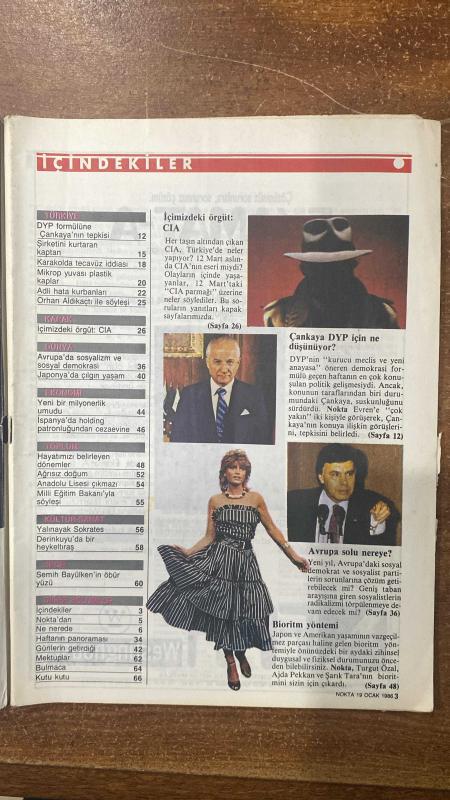 NOKTA HABER DERGİSİ - 19 OCAK 1986 SAYI: 2 NE DÜŞÜNÜYOR - DYP İÇİN ÇANKAYA - İÇİMİZDEKİ ÖRGÜT - İSTANBUL HATIRASI - COCA COLA - CIA - KAPAK - İÇİMİZDEKİ ÖRGÜT CIA - TÜRKİYE - DYP FORMÜLÜNE ÇANKAYA'NIN TEPKİSİ - ŞİRKETİNİ KURTARAN KAPTAN - KARAKOLDA TECAVÜZ İDDİASI - MİKROP YUVASI PLASTİK KAPLAR - ADLİ HATA KURBANLARI - ORHAN ALDIKAÇTI - DÜNYA - AVRUPA'DA SOSYALİZM VE SOSYAL DEMOKRASİ - JAPONYA'DA ÇILGIN YAŞAM - EKONOMİ - YENİ MİLYONERLİK UMUDU - İSPANYA'DA HOLDİNG PATRONLUĞUNDAN CEZAEVİNE - TOPLUM - HAYATIMIZI BELİRLEYEN DÖNEMLER - AĞRISIZ DOĞUM - ANADOLU LİSESİ ÇIKMAZI - MİLLİ EĞİTİM BAKANI - KÜLTÜR SANAT - YALINAYAK SOKRATES - DERİNKUYU HEYKELTIRAŞ - SPOR - SEMİH BAYÜLKEN -- 72 SAYFA, ERCAN ARIKLI tarafından kaleme alınmıştır. Kitap GELİŞİM YAYINLARI tarafından yayınlanmıştır. 72 sayfadır. NOKTA HABER DERGİSİ - 19 OCAK 1986 SAYI: 2 NE DÜŞÜNÜYOR - DYP İÇİN ÇANKAYA - İÇİMİZDEKİ ÖRGÜT - İSTANBUL HATIRASI - COCA COLA - CIA - KAPAK - İÇİMİZDEKİ ÖRGÜT CIA - TÜRKİYE - DYP FORMÜLÜNE ÇANKAYA'NIN TEPKİSİ - ŞİRKETİNİ KURTARAN KAPTAN - KARAKOLDA TECAVÜZ İDDİASI - MİKROP YUVASI PLASTİK KAPLAR - ADLİ HATA KURBANLARI - ORHAN ALDIKAÇTI - DÜNYA - AVRUPA'DA SOSYALİZM VE SOSYAL DEMOKRASİ - JAPONYA'DA ÇILGIN YAŞAM - EKONOMİ - YENİ MİLYONERLİK UMUDU - İSPANYA'DA HOLDİNG PATRONLUĞUNDAN CEZAEVİNE - TOPLUM - HAYATIMIZI BELİRLEYEN DÖNEMLER - AĞRISIZ DOĞUM - ANADOLU LİSESİ ÇIKMAZI - MİLLİ EĞİTİM BAKANI - KÜLTÜR SANAT - YALINAYAK SOKRATES - DERİNKUYU HEYKELTIRAŞ - SPOR - SEMİH BAYÜLKEN -- 72 SAYFA adlı eser Türkçe dilindedir.