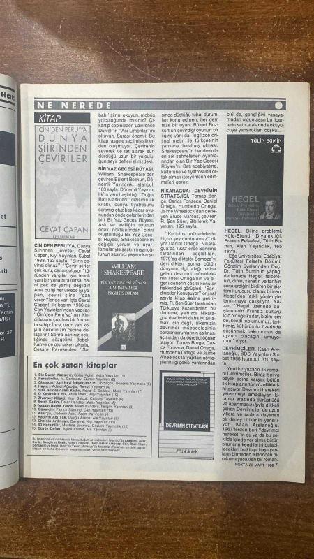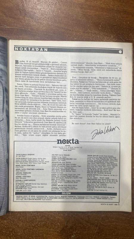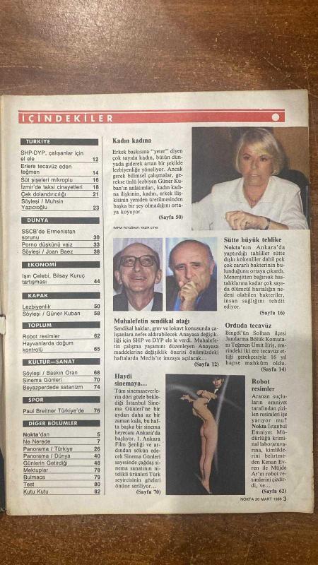 NOKTA HABER DERGİSİ - 20 MART 1988 SAYI: 11 GÜNER KUBAN - MUHSİN YAZICIOĞLU - JOAN BAEZ - KADİR ÇITAK - IŞIN ÇELEBİ - BİLSAY KURUÇ - BASKIN ORAN - PAUL BREITNER - ERCAN ARIKLI - ADİL ÖZKOL - DUYGU ASENA - KORHAN ATAY - AYCAN GİRİTLİOĞLU - GÜLAY GÖKTÜRK - SALİH MEMECAN - MUSTAFA ÖZYÜREK - EMİN TANRIYAR - HINCAL ULUÇ - ARDA USKAN - HİLMİ YAVUZ - ENGIN VARDAR - AYDIN DEMİRER - VIKI İZRAİL - NİLGÜN UYSAL - LEVENT TAYLA - HAKAN AKÇAOĞLU - FIGEN AKŞİT - ALİ BORATAV - YÜCEL GÖKTÜRK - SEFA KAPLAN - ŞAZİYE KARLIKLI - MAHMUT ÖVÜR - SERHAT ÖZTÜRK - MEHMET YALÇIN - AYŞEGÜL DEVECİOĞLU - GÜL BÜYÜKBEŞE - RUŞEN ÇAKIR - HIDIR GÖKTAŞ - CAN KARAKAŞ - CENGİZ KUŞÇUOĞLU - HALUK MÜFTÜOĞULLARI - NURAY ŞİRİN - AYTEKİN YILDIZ - AHMET KÖKÇÜ - YAĞMUR ATSIZ - ABDULLAH GÖRGÜN - MİHAIL VASILIADIS - ADEM ALFAN - ERZADE ERTEM - BATUHAN KIRAN - ÜMİT KİRDİL - CEVAT ÇAPAN - KAAN ARSLANOĞLU EL ELE ANAYASA DEĞİŞİKLİĞİ - DYP-SHP - KADIN KADINA - ERLERE TECAVÜZ EDEN TEĞMEN - SÜT ŞİŞELERİ MİKROPLU - İZMİR’DE TAKSİ -64 SAYFA adlı eser, Kitap > Edebiyat, Kurgu > Edebiyat Bilimi kategorisinde İkinci El olarak satıştadır.