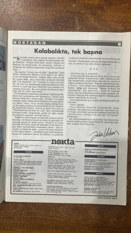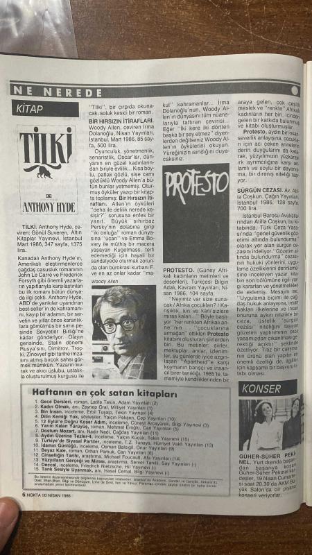NOKTA HABER DERGİSİ - 20 NİSAN 1986 SAYI: 15 MÜRİTLER KOLEJLİ - BİNLERCE MAHKUM SÜRGÜN YOLUNDA - CUMHURİYET TARİHİNİN EN BÜYÜK SÜRGÜN FURYASI - KAPAK - BİNLERCE MAHKÛM SÜRGÜN YOLUNDA - BULAŞIKÇILIK YAPAN MİMARLIK ÖĞRENCİSİ - KARIN TOKLUĞUNA ZORAKİ TEZGAHTAR - YAZARLARI DA SÜRERLER - TÜRKİYE - ADNAN HOCA'NIN BEŞİNCİ KOLU - AHMET UÇAN - İŞKENCE ZANLISI DOKTORLAR - AKBULUT - SIDDIK BİLGİN OLAYI - SÜHA BAYKAL - ZENGER - DÜNYA - DOĞU BLOKU'NDA İKİ ÇATLAK - LİBYA - EKONOMİ - HALİL ATA - TOPLUM - FOBİLER TEDAVİ EDİLİYOR - EROTİK DÜŞLER - KÜLTÜR VE SANAT - SELİM İLERİ - İSTANBUL'DA CAZ - SPOR - DÜNYA BUZPATENİ ŞAMPİYONASI - - 72 SAYFA, ERCAN ARIKLI tarafından kaleme alınmıştır. Kitap GELİŞİM YAYINLARI tarafından yayınlanmıştır. 72 sayfadır. NOKTA HABER DERGİSİ - 20 NİSAN 1986 SAYI: 15 MÜRİTLER KOLEJLİ - BİNLERCE MAHKUM SÜRGÜN YOLUNDA - CUMHURİYET TARİHİNİN EN BÜYÜK SÜRGÜN FURYASI - KAPAK - BİNLERCE MAHKÛM SÜRGÜN YOLUNDA - BULAŞIKÇILIK YAPAN MİMARLIK ÖĞRENCİSİ - KARIN TOKLUĞUNA ZORAKİ TEZGAHTAR - YAZARLARI DA SÜRERLER - TÜRKİYE - ADNAN HOCA'NIN BEŞİNCİ KOLU - AHMET UÇAN - İŞKENCE ZANLISI DOKTORLAR - AKBULUT - SIDDIK BİLGİN OLAYI - SÜHA BAYKAL - ZENGER - DÜNYA - DOĞU BLOKU'NDA İKİ ÇATLAK - LİBYA - EKONOMİ - HALİL ATA - TOPLUM - FOBİLER TEDAVİ EDİLİYOR - EROTİK DÜŞLER - KÜLTÜR VE SANAT - SELİM İLERİ - İSTANBUL'DA CAZ - SPOR - DÜNYA BUZPATENİ ŞAMPİYONASI - - 72 SAYFA adlı eser Türkçe dilindedir.