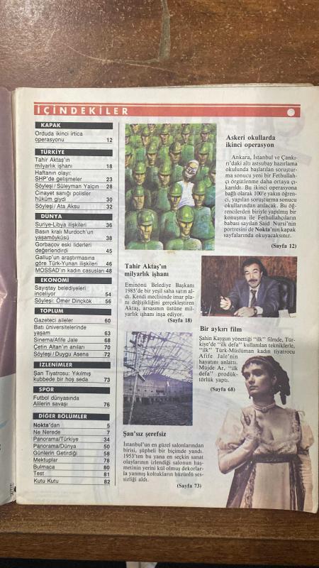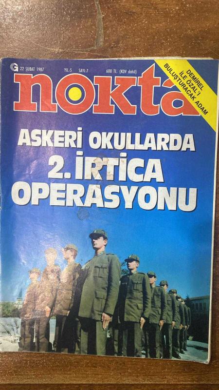 NOKTA HABER DERGİSİ - 22 ŞUBAT 1987 SAYI: 7- DEMİREL İLE ÖZALI BULUŞTURCAK ADAM - ASKERİ OKULLARDA 2.İRTİCA OPERASYONU - KAPAK - ORDUDU İKİNCİ İRTİCA OPERASYONU - SAİD NURSİ - TÜRKİYE - TAHİR AKTAŞ - SHP'DE GELİŞMELER - SÜLEYMAN YALÇIN - CİNAYET SANIKLARI POLİSLER - ATA AKSU - DÜNYA - SURİYE LİBYA İLİŞKİLERİ - MURDOCH - GORBAÇOV - TÜRK YUNAN İLİŞKİLERİ - GALLUP - MOSSAD - EKONOMİ - SAYIŞTAY - ÖMER DİNÇKÖK - TOPLUM - GAZETECİ AİLELER - BATI ÜNİVERSİTELERİNDE YAŞAM - AFİFE JALE - ŞAHİN KAYGUN - MÜJDE AR - ÇETİN ALTAN - DUYGU ASENA - İZLENİMLER - ŞAN TİYATROSU - SPOR - FUTBOL DÜNYASINDA ALİLERİN SAVAŞI - - 72 SAYFA, ERCAN ARIKLI tarafından kaleme alınmıştır. Kitap GELİŞİM YAYINLARI tarafından yayınlanmıştır. 72 sayfadır. NOKTA HABER DERGİSİ - 22 ŞUBAT 1987 SAYI: 7- DEMİREL İLE ÖZALI BULUŞTURCAK ADAM - ASKERİ OKULLARDA 2.İRTİCA OPERASYONU - KAPAK - ORDUDU İKİNCİ İRTİCA OPERASYONU - SAİD NURSİ - TÜRKİYE - TAHİR AKTAŞ - SHP'DE GELİŞMELER - SÜLEYMAN YALÇIN - CİNAYET SANIKLARI POLİSLER - ATA AKSU - DÜNYA - SURİYE LİBYA İLİŞKİLERİ - MURDOCH - GORBAÇOV - TÜRK YUNAN İLİŞKİLERİ - GALLUP - MOSSAD - EKONOMİ - SAYIŞTAY - ÖMER DİNÇKÖK - TOPLUM - GAZETECİ AİLELER - BATI ÜNİVERSİTELERİNDE YAŞAM - AFİFE JALE - ŞAHİN KAYGUN - MÜJDE AR - ÇETİN ALTAN - DUYGU ASENA - İZLENİMLER - ŞAN TİYATROSU - SPOR - FUTBOL DÜNYASINDA ALİLERİN SAVAŞI - - 72 SAYFA adlı eser Türkçe dilindedir.