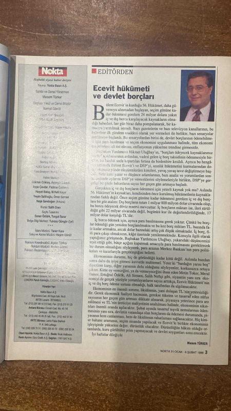 NOKTA HABER DERGİSİ - 31 OCAK-6 ŞUBAT 1999 SAYI: 886 BÜLENT ECEVİT - HİKMET ULUĞBAY - METİN TOKER - MERAL TAMER - ERTUĞRUL ÖZKÖK - ALİ SİRMEN - SALİH NEFTÇİ - MASUM TÜRKER - KEMAL GÖNÜL - FİKRİ NAZİF AYYILDIZ - SEVİLAY NİHAN - GÖKSAN GÖKTAŞ - AYŞEGÜL OKON - AYŞE ÇAVDAR - FADİME ÖZDEMİR - HAYATİ BAKIŞ - M. HALİL KAYIR - YEŞİM SALİHOĞLU - ÖMER SERCAN - NEŞE SARIDOĞAN - SALİH ORAN - SONER ÖZTÜRK - TURGUT SARAR - TUNCAY GÜNGÖR - TANER KARA - HAŞİM GÖNÜL - AYDIN TÜRKER - AYDAN SÖZERİ - LALE ÇALROĞLU - BELKİS KILIÇKAYA - GÜLSEREN ERGÜN - DİLEK GÜLMEN - MESUT GÜNSEV - AHMET SUHAN FİLÂ - FARUK ESKİOĞLU - İRFAN KÖSOĞLU - VURAL SAVAŞ - ABDULLAH ÖCALAN - KURTUL ALTUĞ - ERCAN ÇİTLİOĞLU KADINLARIN KADERİ SEÇİMLE DEĞİŞECEK Mİ - DÜRÜST LİDER ECEVİT - DORUKTAKİ ADAYLAR BELLİ - SOLUN DOĞAL TABANI DSP’DE Mİ TOPLANIYOR - CHP HADEP’İN OYLARINA GÖZ KOYDU - MUSTAFA ÖZYÜREK CHP’DEN ADAY - BİR DÖNEMDEN GELEN DOSTLUK - POLİTİKANIN NABZINI TUTMAK - KOSOVA’YI NE ZAMAN ÖNEMSEYECEK - AMAÇ SADDAM’I DEVİ -64 SAYFA adlı eser, Kitap > Edebiyat, Kurgu > Edebiyat Bilimi kategorisinde İkinci El olarak satıştadır.