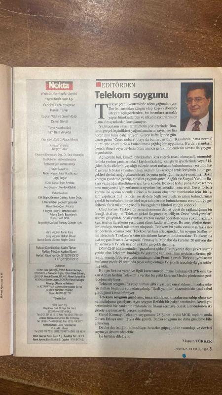 NOKTA HABER DERGİSİ - 7-13 EYLÜL 1997 SAYI: 37 MASUM TÜRKER - KEMAL GÖNÜL - FİKRİ NAZİF AYYILDIZ - FÜSUN ALTINOK - TURGAY TÜRKER - SADİ UZUNOĞLU - MELTEM BOSTANCI - CEMAL SUBAŞI - ABDURRAHMAN PALA - İLKİN SUNGU - GÜÇLÜ ÖZGAN - İLHAN AYYILDIZ - NURDAN KÖŞKLÜ - ELİF BİLGİN - GÖKSAN GÖKTAŞ - AYTEN ÖVÜR - MURAT UTKU - ŞEBNEM ŞABUDAK - NEŞE SARIDOĞAN - MEHMET BARS - ŞAHİN ESENDEMİR - SALİH ORAN - TUNCAY GÜNGÖR - TANER KARA - HAKAN ÜNSAL - HAŞİM GÖNÜL - AYDIN TÜRKER - AYDAN SÖZERİ - LALE ÇAKIROĞLU - BELKIS KILIÇKAYA - GÜLSEREN ERGÜN - DİLEK GÜLMEN - MESUT GÜNSEV - AHMET SUHAN FİLÂ - ŞENER LEVENT - FARUK ESKİOĞLU - GÜVEN ERKAYA - ADNAN KESKİN - ZEKERİYA TEMİZEL - MEHMET SAĞLAM - RECEP TAYYİP ERDOĞAN - FÜREYA KORAL - ALEV SEZER - SAİM BUGAY - ÖMER ÖZARGUN - MUSA KART MİLLETVEKİLLERİNİN NOT KARNESİ - PAPARAZZİE ÖZEL HAYAT VE BASIN ETİĞİ - BİR PERİNİN MASALI - TELEKOM SOYGUNU - CESSET TORBASI OLAYI - YENİ DARBELERE GEÇİT YOK - S-300 FÜZELERİ GERGİNLİĞİ - KAFKAS PETROLÜNÜN CAZİBESİ -İ -64 SAYFA, ERCAN ARIKLI tarafından kaleme alınmıştır. Kitap GELİŞİM YAYINLARI tarafından yayınlanmıştır. 64 sayfadır. NOKTA HABER DERGİSİ - 7-13 EYLÜL 1997 SAYI: 37 MASUM TÜRKER - KEMAL GÖNÜL - FİKRİ NAZİF AYYILDIZ - FÜSUN ALTINOK - TURGAY TÜRKER - SADİ UZUNOĞLU - MELTEM BOSTANCI - CEMAL SUBAŞI - ABDURRAHMAN PALA - İLKİN SUNGU - GÜÇLÜ ÖZGAN - İLHAN AYYILDIZ - NURDAN KÖŞKLÜ - ELİF BİLGİN - GÖKSAN GÖKTAŞ - AYTEN ÖVÜR - MURAT UTKU - ŞEBNEM ŞABUDAK - NEŞE SARIDOĞAN - MEHMET BARS - ŞAHİN ESENDEMİR - SALİH ORAN - TUNCAY GÜNGÖR - TANER KARA - HAKAN ÜNSAL - HAŞİM GÖNÜL - AYDIN TÜRKER - AYDAN SÖZERİ - LALE ÇAKIROĞLU - BELKIS KILIÇKAYA - GÜLSEREN ERGÜN - DİLEK GÜLMEN - MESUT GÜNSEV - AHMET SUHAN FİLÂ - ŞENER LEVENT - FARUK ESKİOĞLU - GÜVEN ERKAYA - ADNAN KESKİN - ZEKERİYA TEMİZEL - MEHMET SAĞLAM - RECEP TAYYİP ERDOĞAN - FÜREYA KORAL - ALEV SEZER - SAİM BUGAY - ÖMER ÖZARGUN - MUSA KART MİLLETVEKİLLERİNİN NOT KARNESİ - PAPARAZZİE ÖZEL HAYAT VE BASIN ETİĞİ - BİR PERİNİN MASALI - TELEKOM SOYGUNU - CESSET TORBASI OLAYI - YENİ DARBELERE GEÇİT YOK - S-300 FÜZELERİ GERGİNLİĞİ - KAFKAS PETROLÜNÜN CAZİBESİ -İ -64 SAYFA adlı eser Türkçe dilindedir.